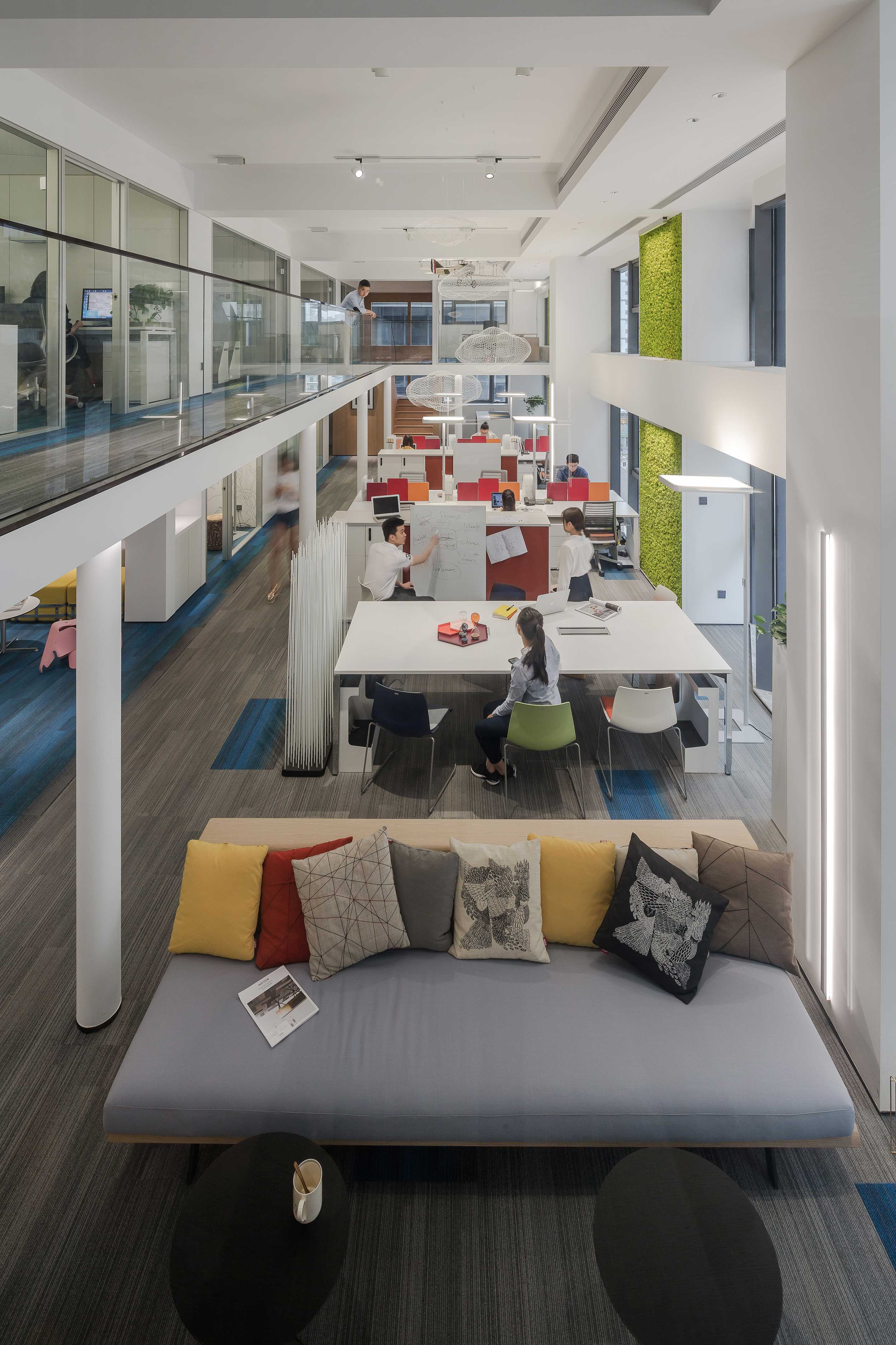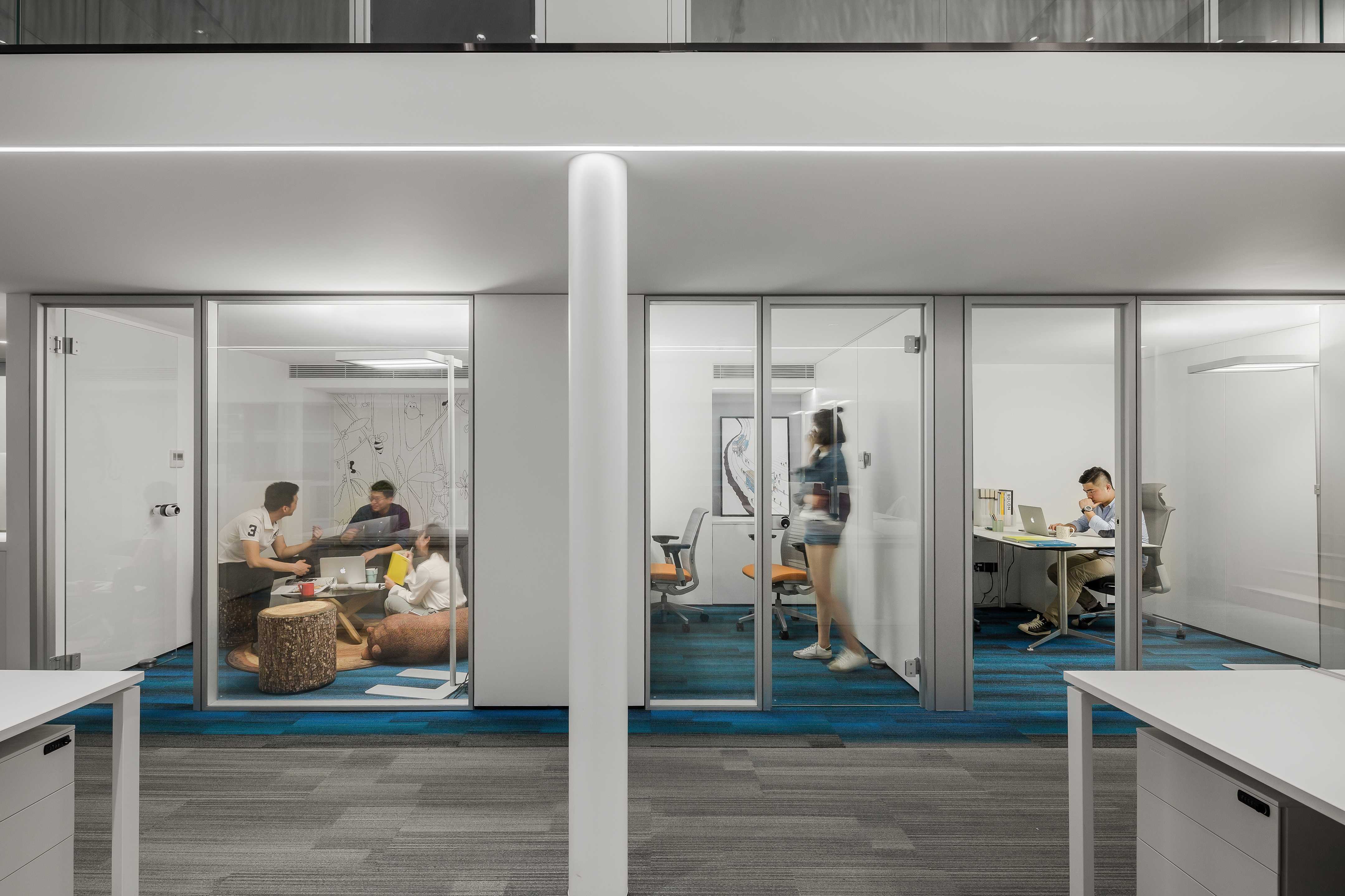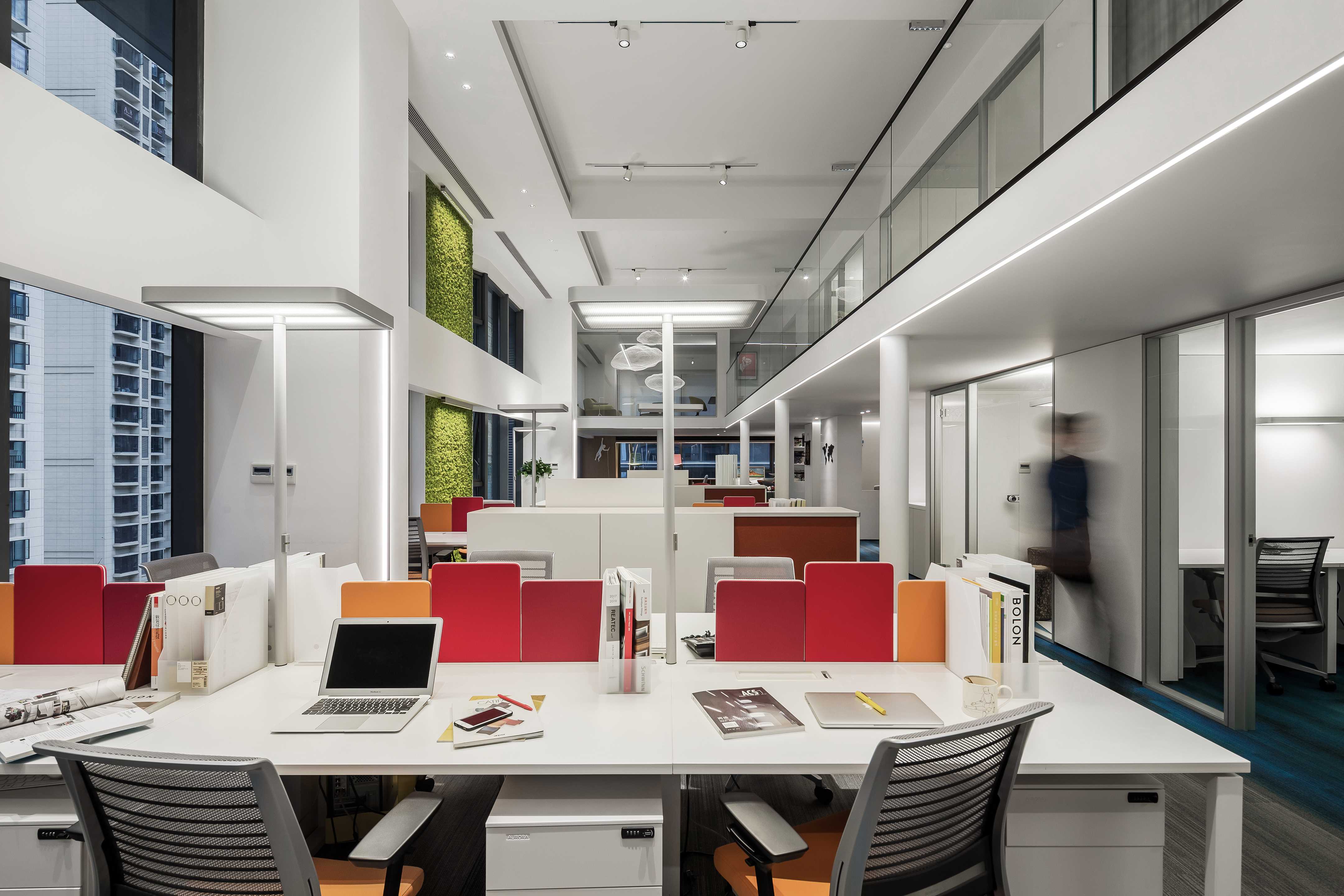 There are many highlights in the interior lighting design. In the public area, table lamps are used to solve the problem of high lighting in super high-rise buildings. The large Angle track lamps on the top focus on anti-glare. All independent office ceilings do not make any lamps, only up and down luminous floor lamps to solve the lighting, to create the most soft ambient light, even if long time work will not be visual fatigue.