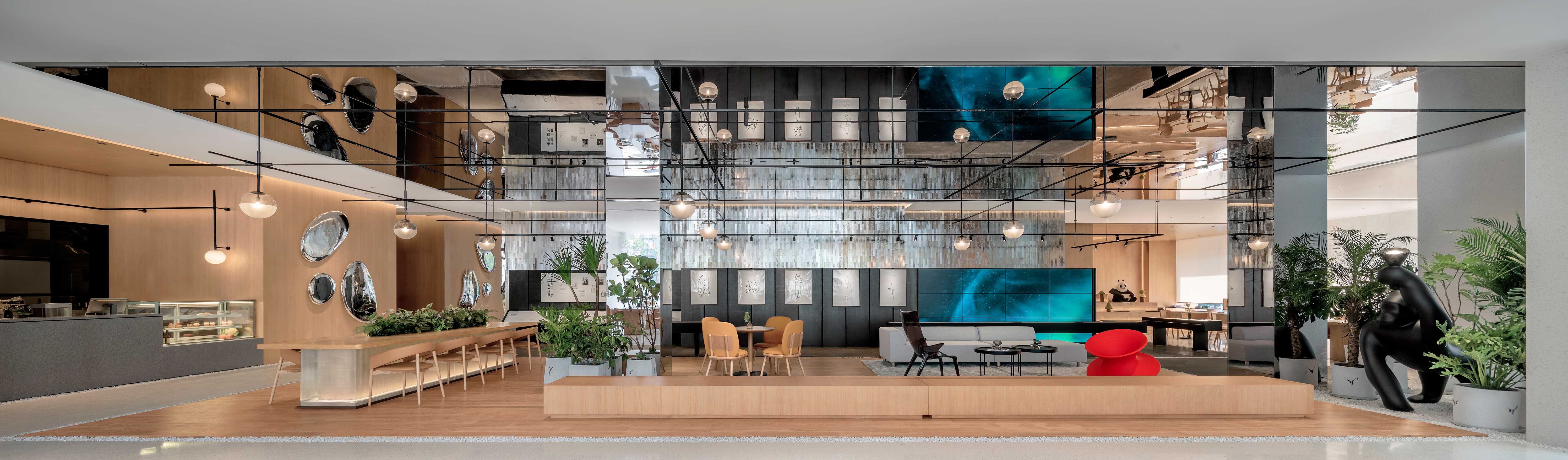 Under the principles of “health,” “sustainability,” and “creativity,” the space incorporates various public areas, such as the conservatory, bar, salon zones, window-side seating, and pop-up exhibitions by independent designers. This reimagined sales office also functions as an exhibition space, blending engaging scenes and thoughtful details to create a unique cultural, product, and spatial identity. It becomes a lifestyle experience center, a cultural IP adored by young people, and imbues the building with cultural significance.